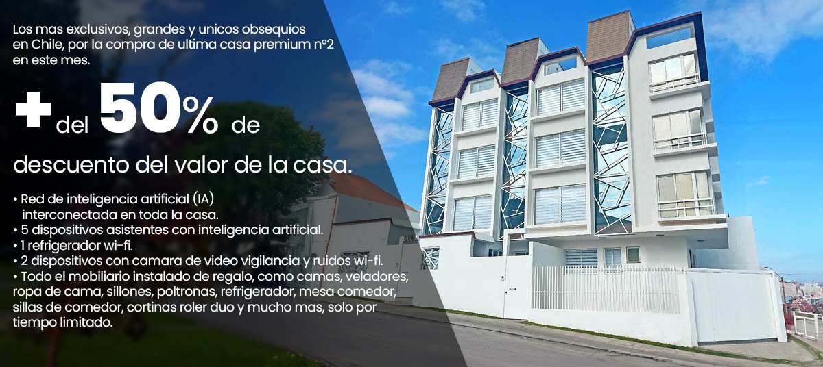 Las Casas Premium de Condominio Tribeca Inteligente Sustentables +IA, cuenta con espectaculares casas de 225, 241 y 273 [m2] construidos en 100% hormigón siendo de 6 niveles, estas son la mejor alternativa a las reales necesidades del mundo moderno, con grandes espacios, saludables, confortables, con excelente iluminación natural, en armonía con su entorno; Cuenta también con el mejor equipamiento y materialidad del mercado inmobiliario, casas de alta gama únicas en Chile, con demasiados beneficios para la familia y hoy, por primera vez están al alcance de su economía, mediante la ayuda de grandes descuentos millonarios, que son el premio al esfuerzo de su familia.